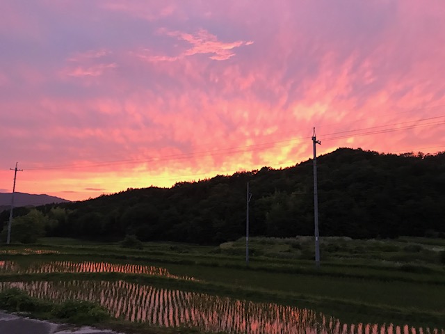 (作品に込めた思い:生まれ育った伊陸の綺麗な夕焼けと田園風景を皆さんにも見ていただきたいです。)