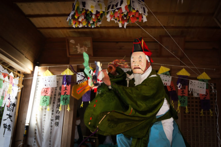 (作品に込めた思い:2019年の南山神社での伊陸神楽の様子。力強い翁の舞をかっこよく臨場感が出るように撮影した。)